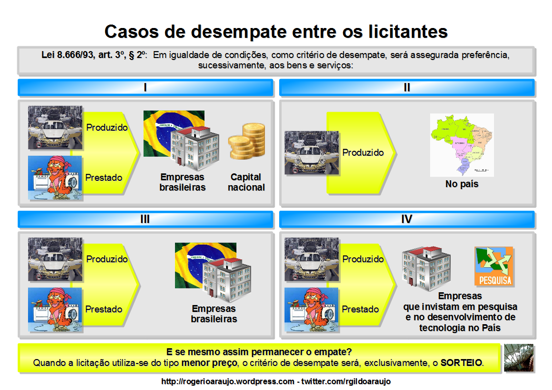 Para nos ajudar no assunto de Licitações e Contratos, fiz um esquema para os casos de desempate entre os licitantes.
