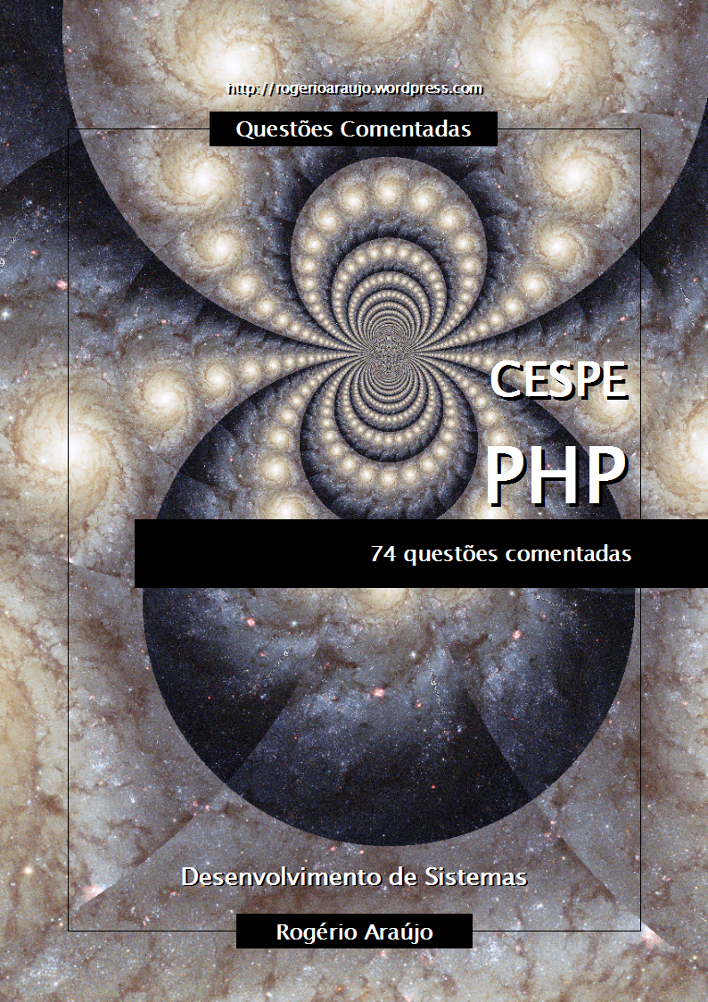 Questões comentadas: Questões do CESPE – Desenvolvimento de Sistemas – PHP 24/01/201115/12/2016 / Professor Rogerão Araújo / 4 Comentários Pessoal, é com prazer que lanço um material de PHP para o concurso do STM! 🙂 Continuar lendo →
