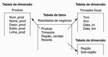 “Dois esquemas multidimensionais comuns são o esquema estrela (star-schema) e o esquema floco de neve (snowflake). O esquema estrela consiste em uma tabela de fatos com uma única tabela para cada dimensão. O esquema floco de neve é uma variação do esquema estrela, em que as tabelas dimensões de um esquema estrela são organizadas em uma hierarquia ao normalizá-las.”
