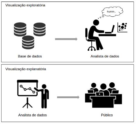 Neste momento é importante identificar se o propósito da visualização é para fins de exploração ou explanação/explicação dos dados. Vejamos algumas características destes possíveis propósitos: